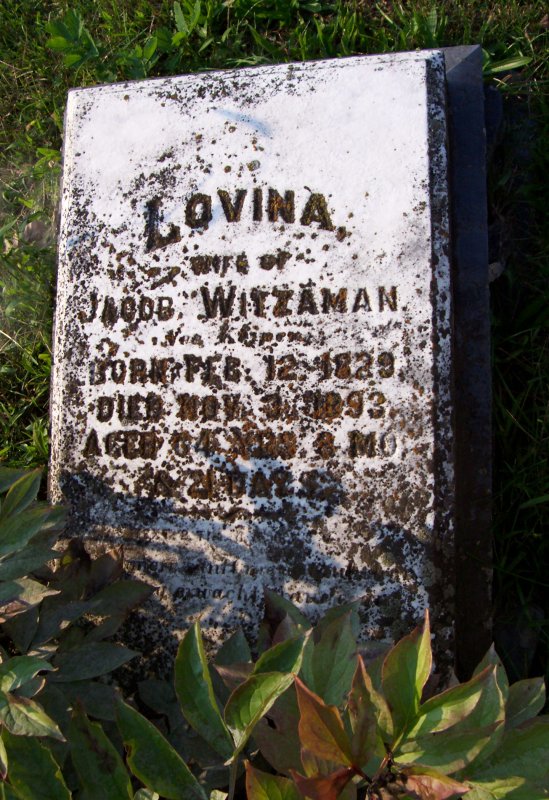 Witzaman, Lovina, wife of Jacob Witzaman 12 FEB 1829 - 03 NOV 1893.