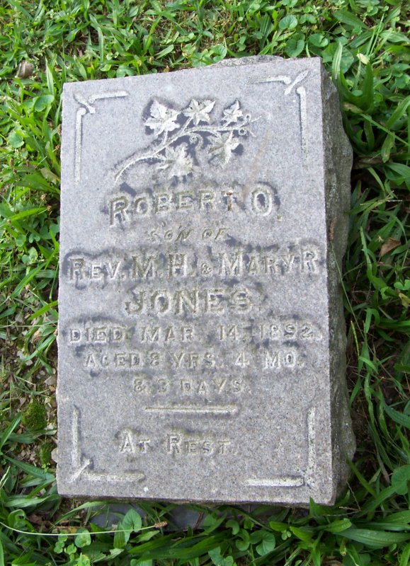 Jones, Robert O. son of Rev. M.H. & Mary R. Jones. died 14 MAR 1892, aged 8y4m3d.
