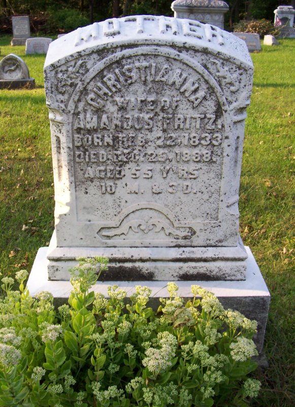 Fritz, Christianna wife of Amandus Fritz 22 FEB 1833 - 25 DEC 1888.