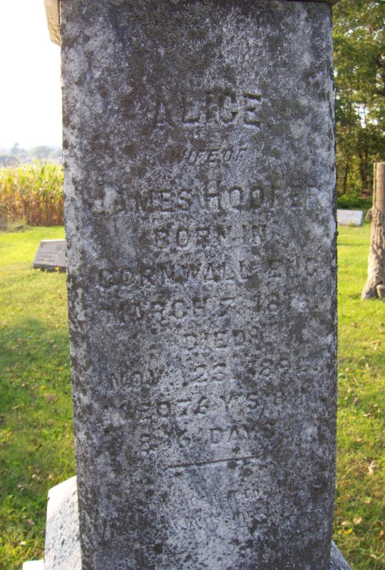 Hooper, Alice wife of James Hooper born in Cornwall England 07 MAR 1815? died 23 NOV 1896?