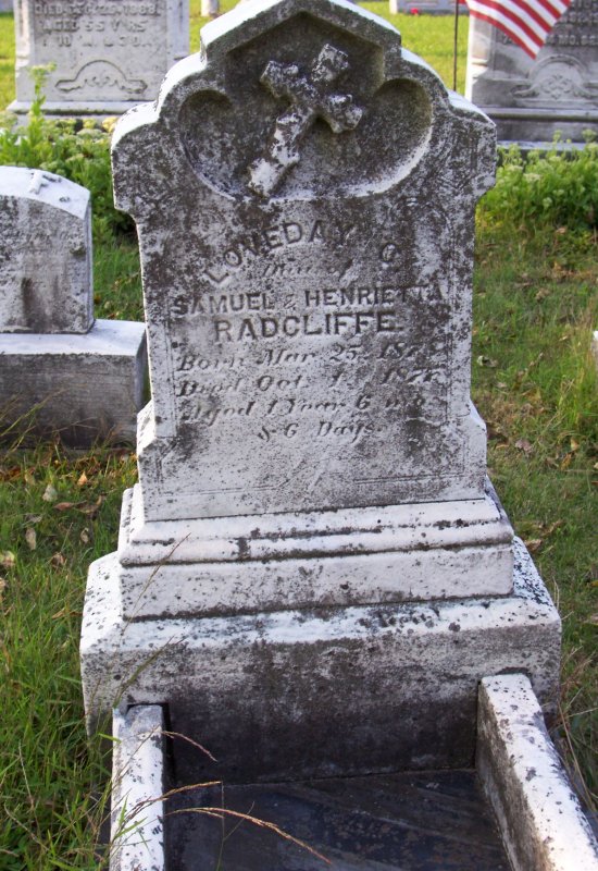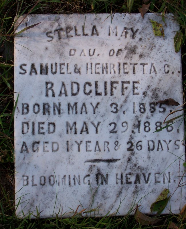 Radcliffe, Stella May dau of Samuel & Henrietta C. Radcliffe 03 MAY 1885 - 29 MAY 1886.