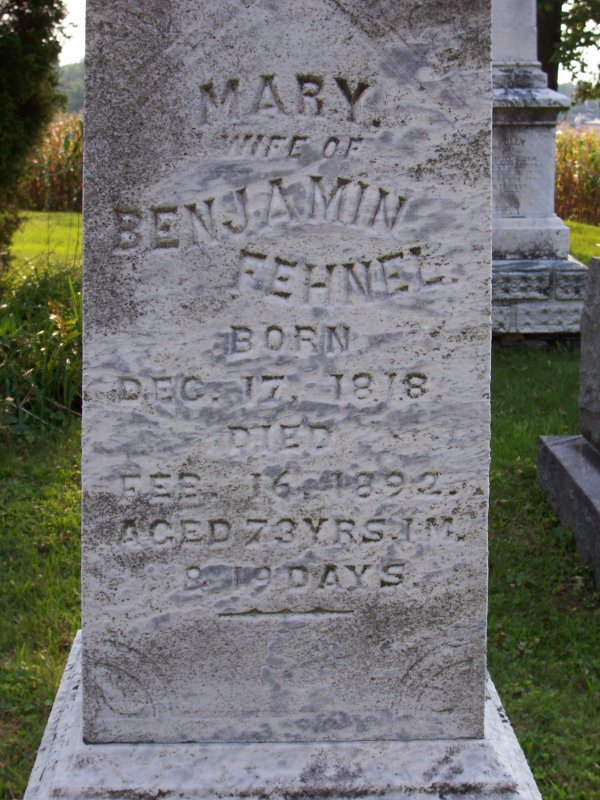 Fehnel, Mary wife of Benjamin Fehnel 17 DEC 1818 - 16 FEB 1892.