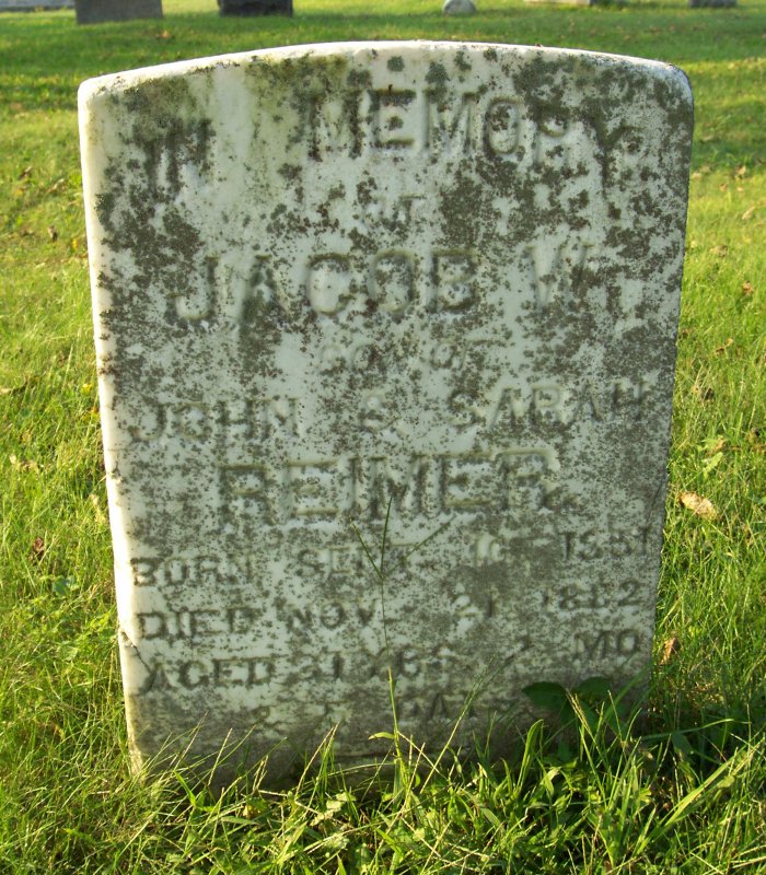 Reimer, Jacob W. son of John & Sarah Reimer 10 SEP 1851 - 21 NOV 1882.