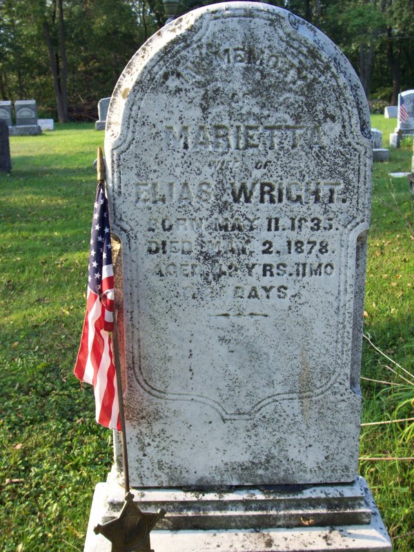 Wright, Marietta wife of Elias Wright 11 MAY 1835 - 02 MAY 1878.