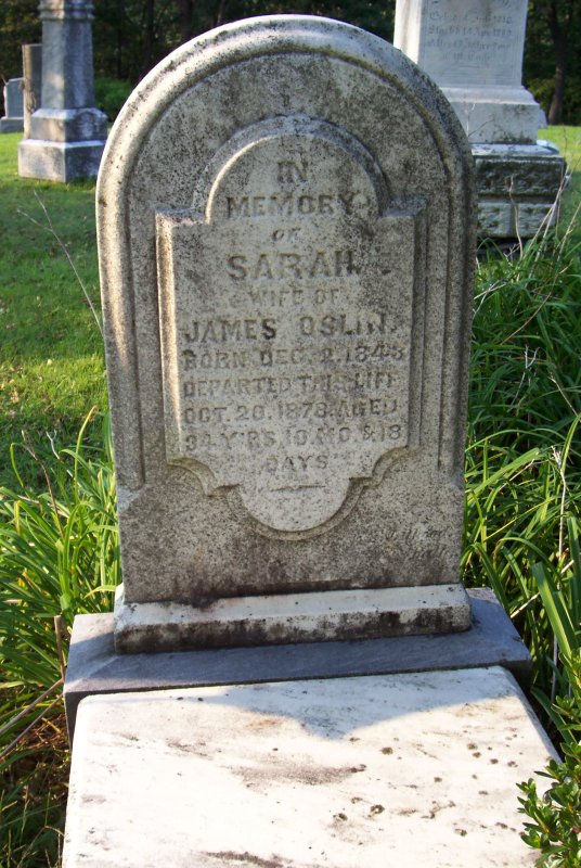 Oslin, Sarah wife of James Oslin 02 DEC 1843 - 20 OCT 1878.