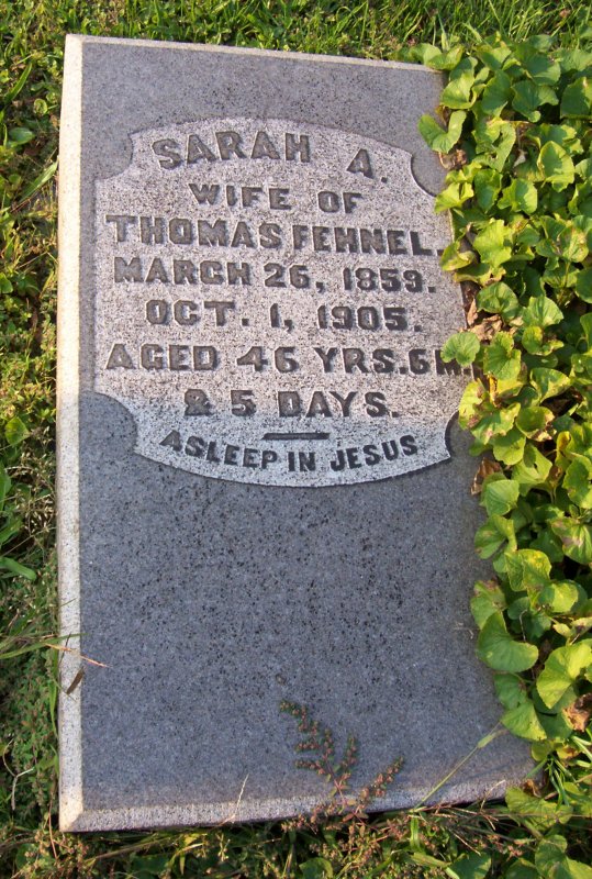 Fehnel, Sarah A. wife of Thomas Fehnel 26 MAR 1859 - 01 OCT 1905.