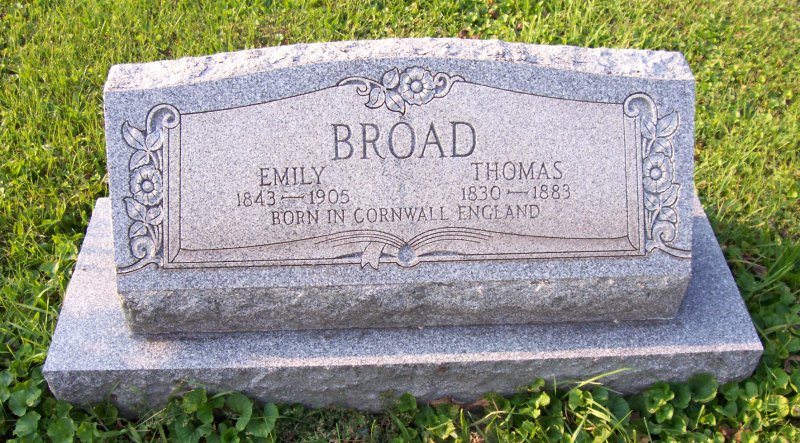 Broad, Thomas 1830 - 1883, Emily 1843 - 1905. Born in Cornwall, England.
