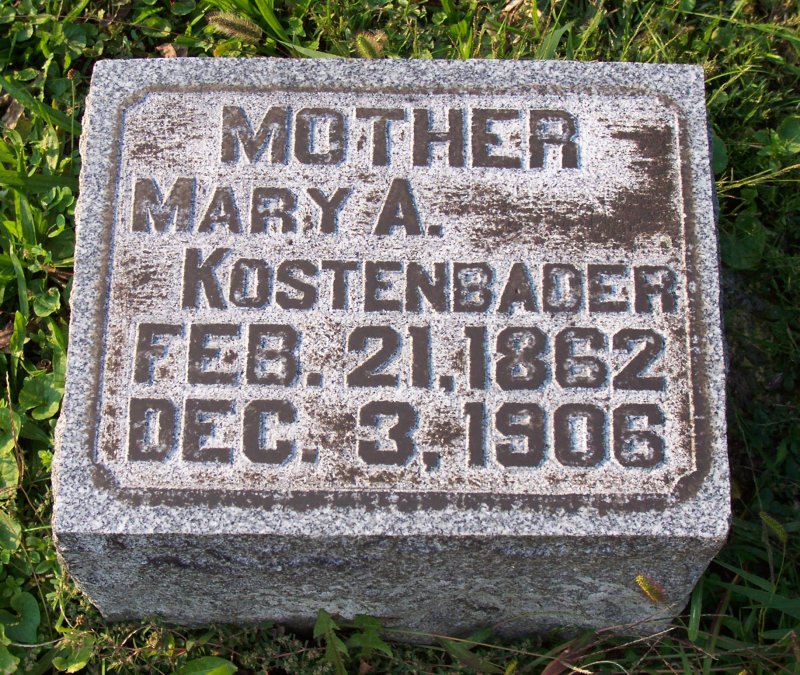 Kostenbader, Mary A. 21 FEB 1862 - 03 DEC 1906.