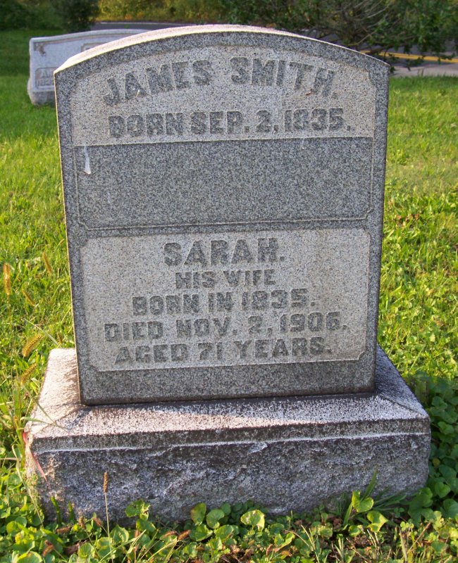 Smith, James 02 SEP 1835 - , Sarah his wife 1835 - 02 NOV 1906.