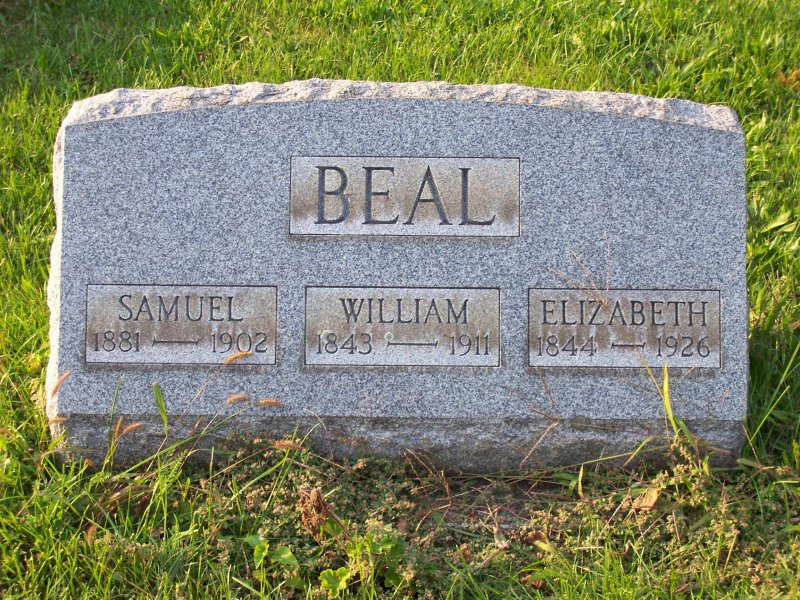 Beal, William 1843 - 1911, Elizabeth 1844 - 1926, Samuel 1881 - 1902.