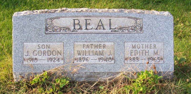 Beal, William J. 1876 - 1940, Edith M. 1883 - 1965, J. Gordon 1910 - 1924.