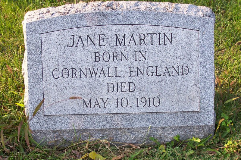 Martin, Jane Born in Cornwall, England, died 10 MAY 1910.