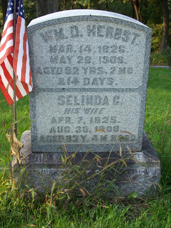 Herbst, Wm. O. 14 MAR 1826 - 22 MAY 1903, Aged 82y 2m 14d,