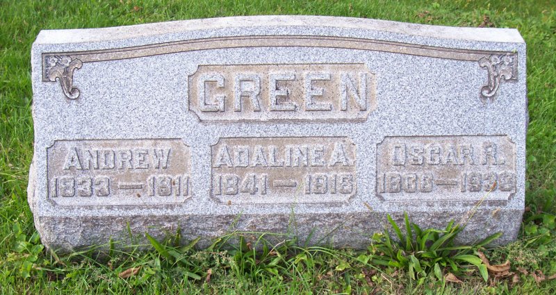 Green, Andrew 1833 - 1911, Adaline A. 1841 - 1916, Oscar R. 1866 - 1936.
