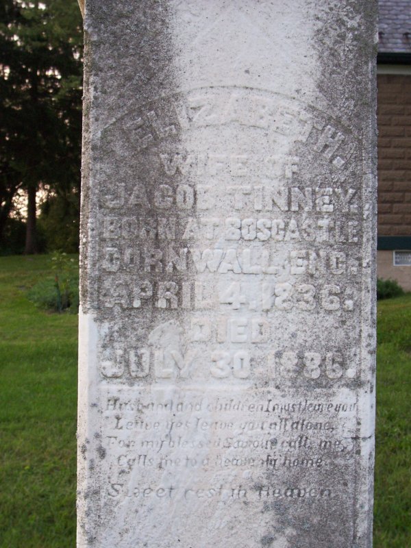 Tinney, Elizabeth wife of Jacob Tinney, born at Soscastle, Cornwall, England