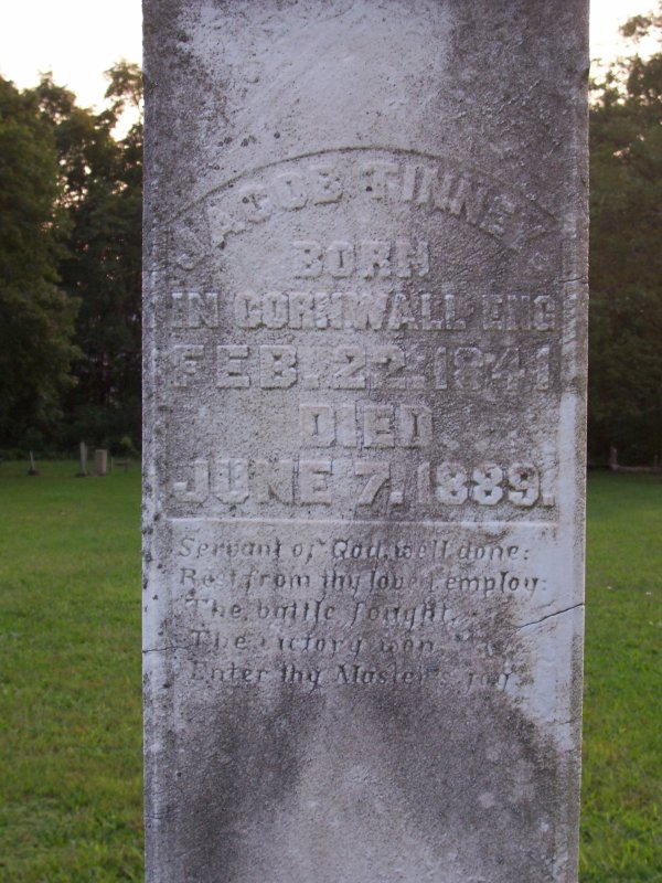 Tinney, Jacob Born in Cornwall, England 22 FEB 1841, Died 07 JUN 1889.