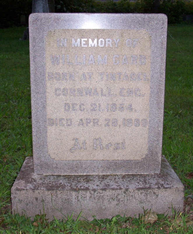 Card, William Born at Tintagel, Cornwall, England 31 DEC 1854, Died 28 APR 1886.