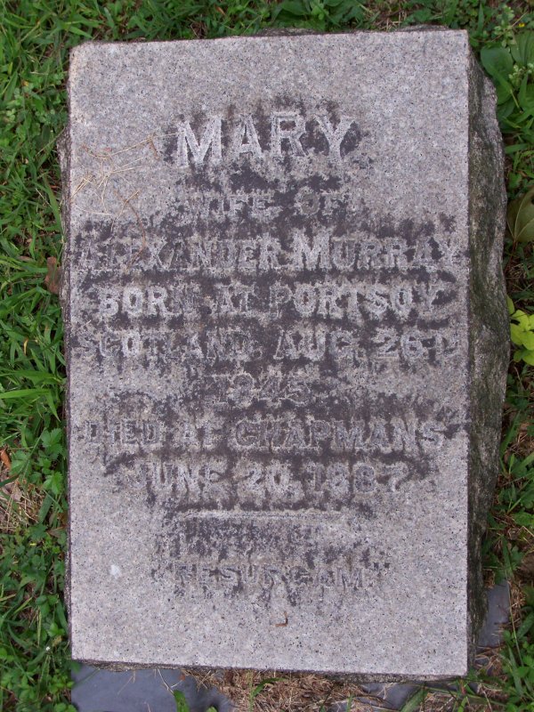 Murray, Mary wife of Alexander Murray. Born at Portsoy, Scotland 26 AUG 1845