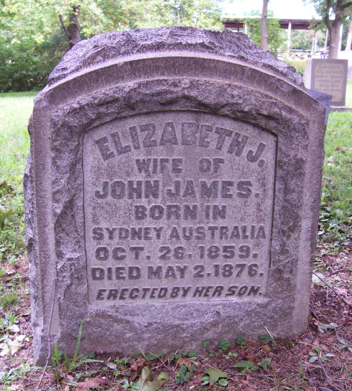 James, Elizabeth J. wife of John James Born in Sydney, Australia 26 OCT 1859,