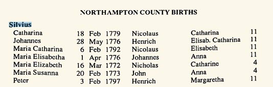 | Northampton County Births | Silvius